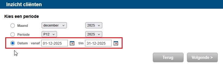 Wanneer je de Cockpit opent via -> Inzicht cliënt -> en december 2025 kiest dan ontstaat er een applicatiefout. Er gaat hier iets mis rondom het bepalen van de 12e maand.
