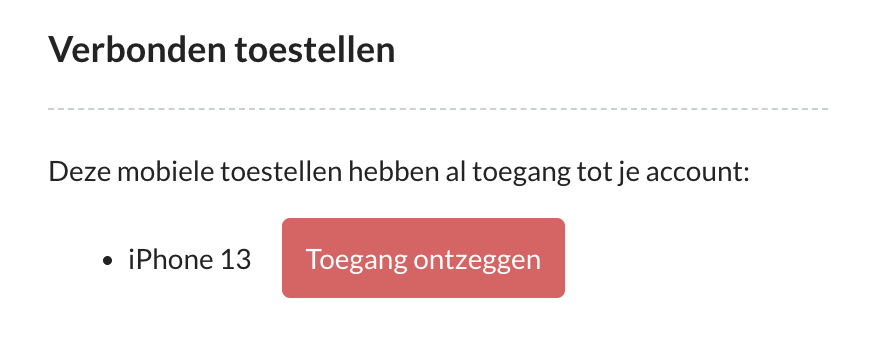 Met de knop Overal uitloggen in het onderdeel Sessies kan de gebruiker in de bovenstaande gevallen alle openstaande websessies binnen 25 minuten (sessietijd) direct afsluiten. Hiermee voorkomt de gebruiker dat er ook binnen de korte sessieduur van 25 minuten onbedoeld toegang wordt verkregen tot Ons.