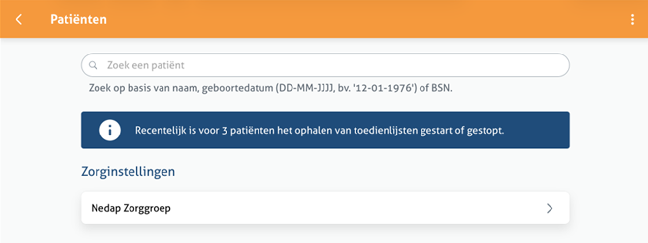 Als apotheek zie je bij het inloggen in Ons® Medicatie voor Apotheken direct een notificatiebanner met het aantal patiënten waarvoor het ophalen van toedienlijsten de afgelopen zeven dagen is gestart of gestopt.