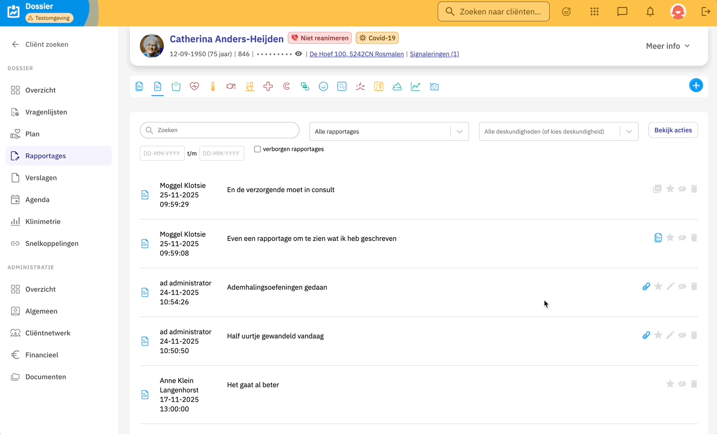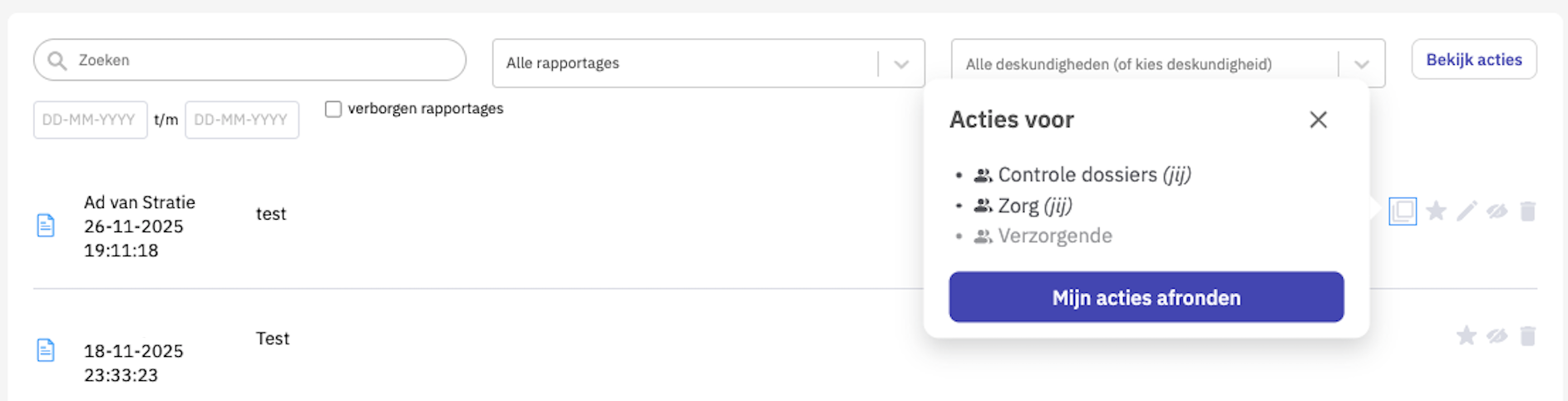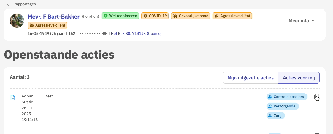 Op het Rapportage-overzicht heb je ook de knop Bekijk acties. Via deze knop kom je op de pagina met alle openstaande acties van de cliënt.