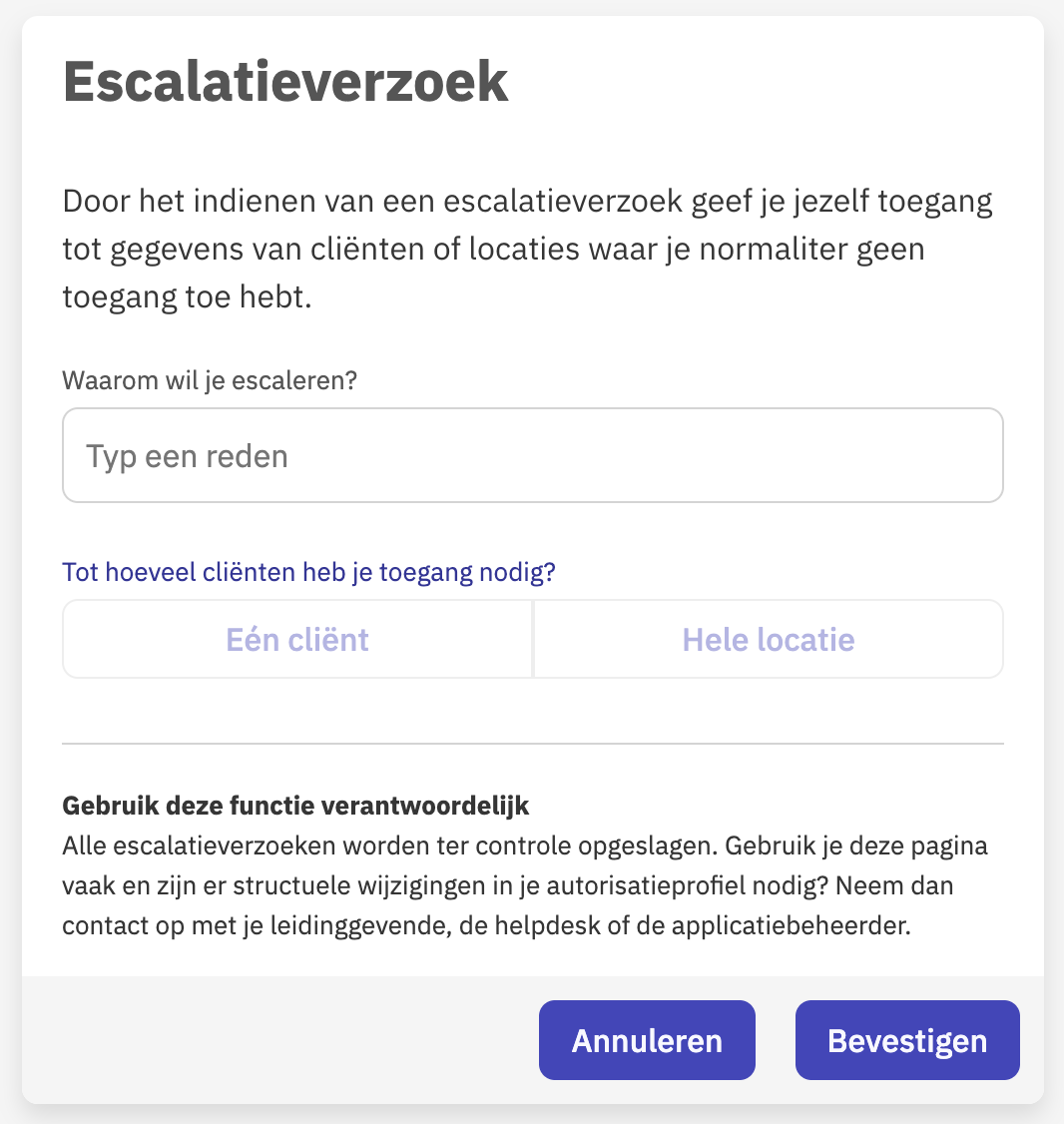 Werkwijze via de escalatiepagina: Op de escalatiepagina kan de gebruiker aangeven: