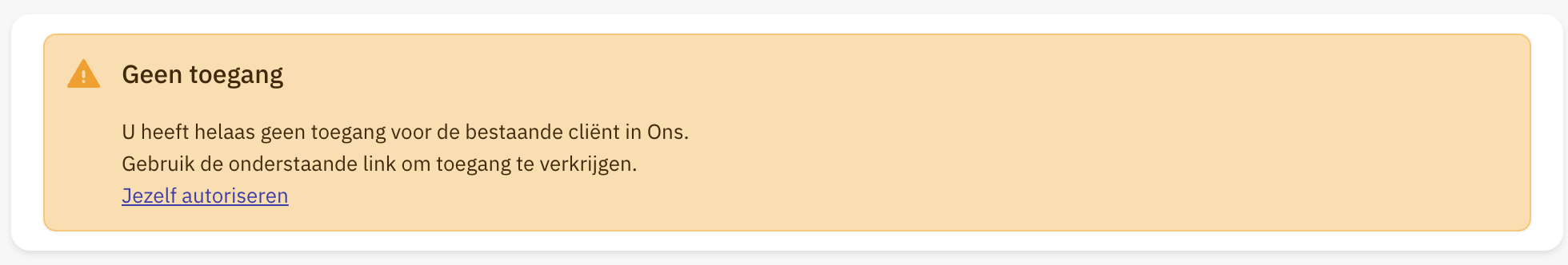 Melding bij ontbrekende rechten: Wanneer de gebruiker onvoldoende rechten heeft om de cliëntgegevens op te vragen, verschijnt onderstaande melding: