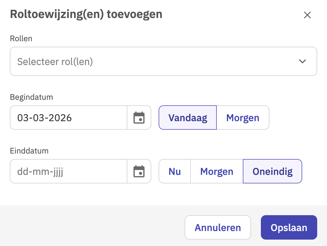 Let op: de begindatum van een rol mag niet in het verleden liggen