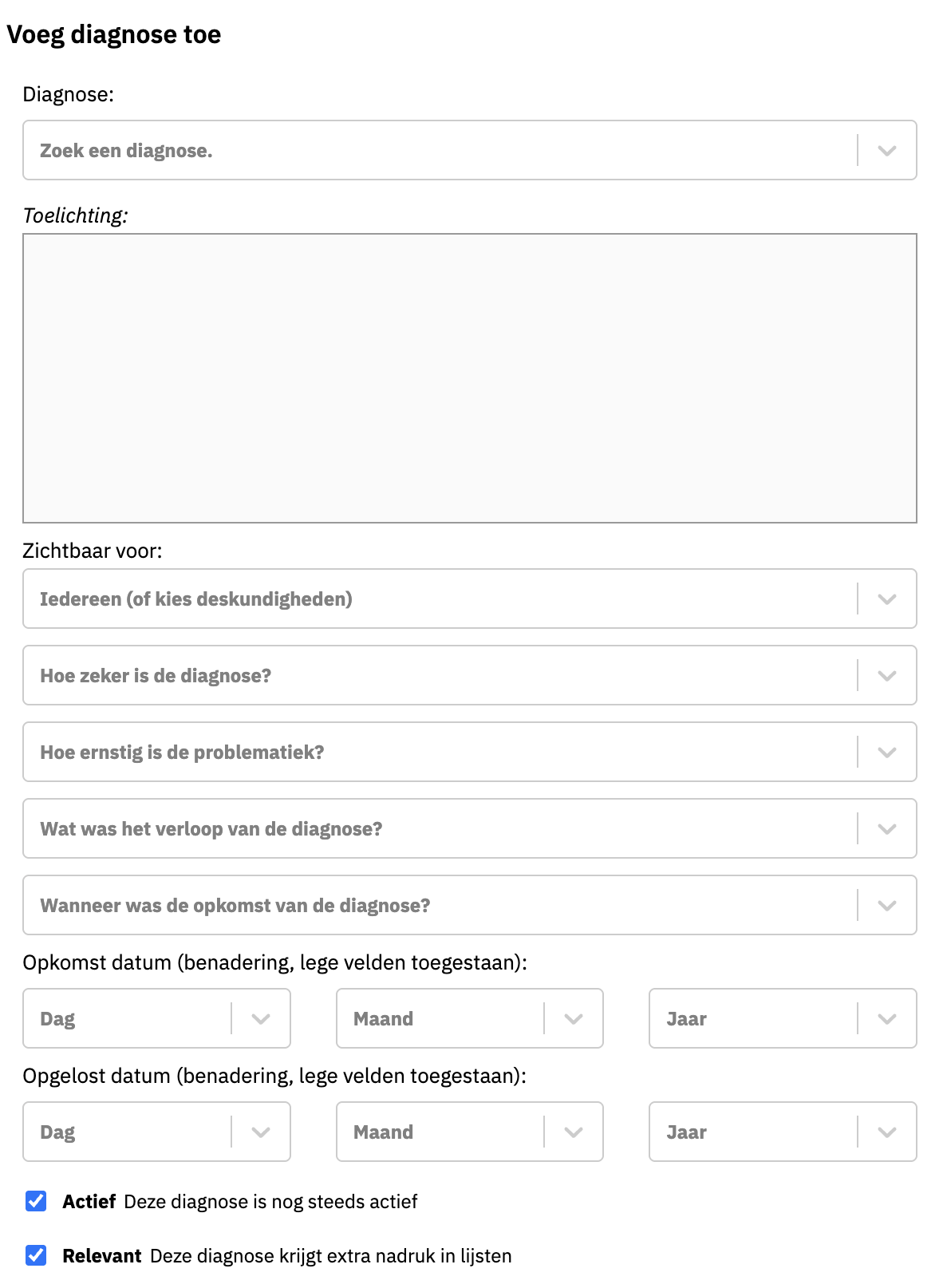 | ProbleemNaam | Diagnose Met optionele SNOMED codering |